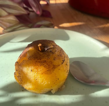 Placer les pommes épluchées dans un plat allant au four. Faire fondre le ghee et en saucer les pommes.